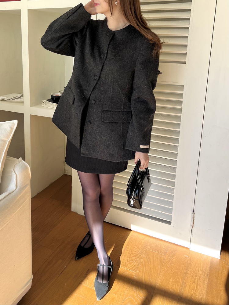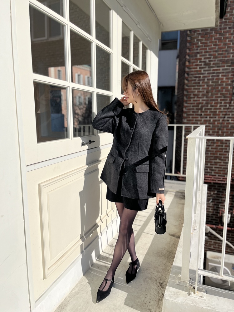 [100% Wool] Louvre Slim Wool Coat (Black)