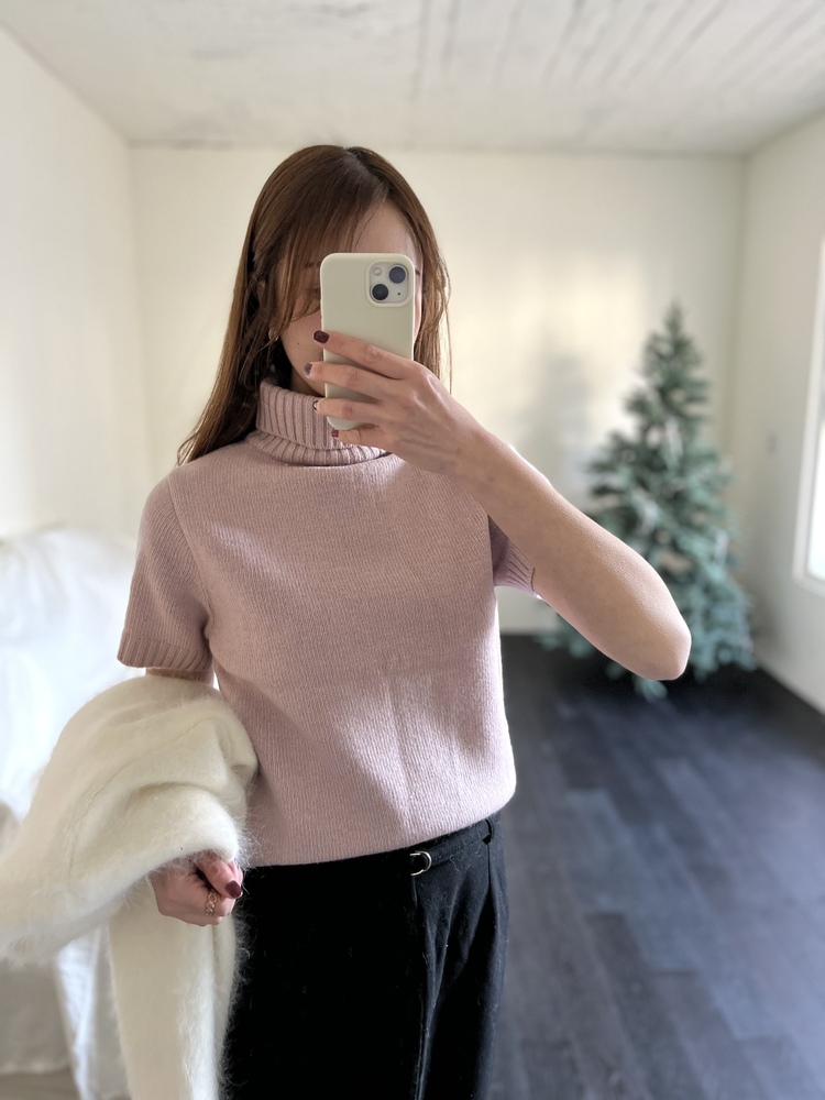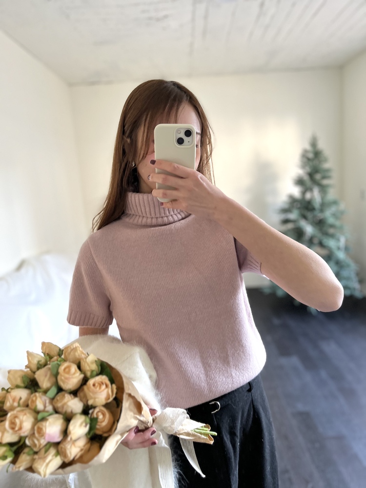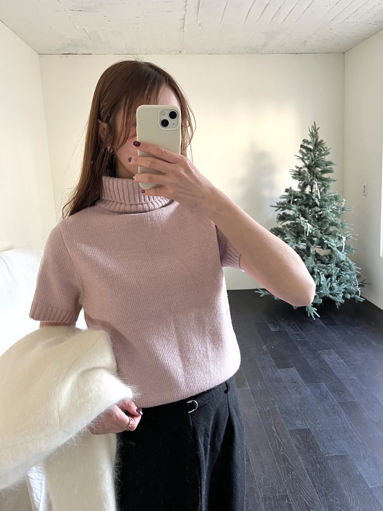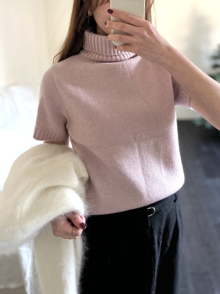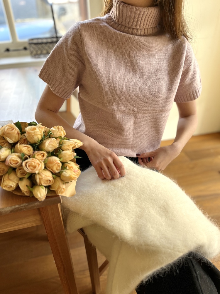 Cashmere Short Sleeves Sweater (Dusty Pink)