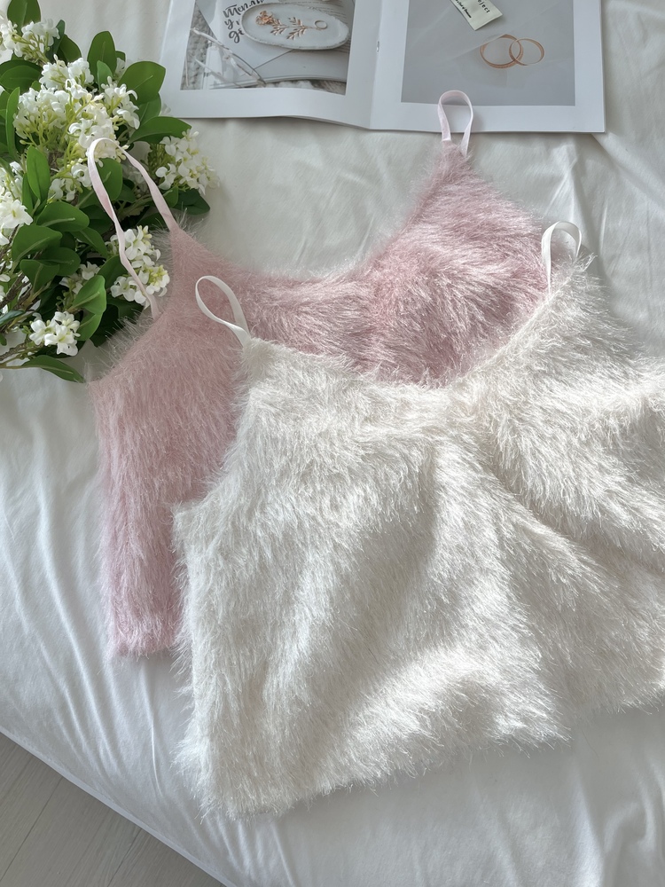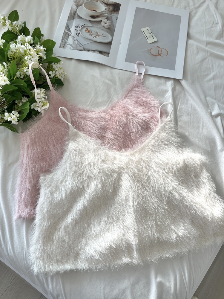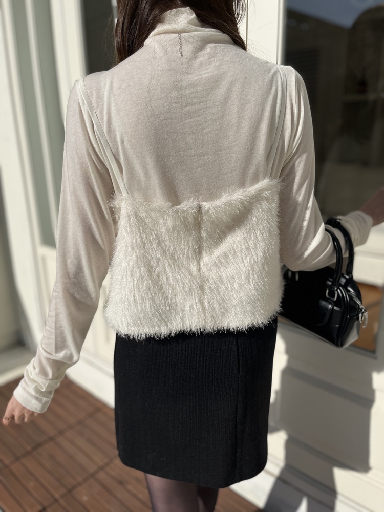 Faux Fur Crop Camisole (Ivory)