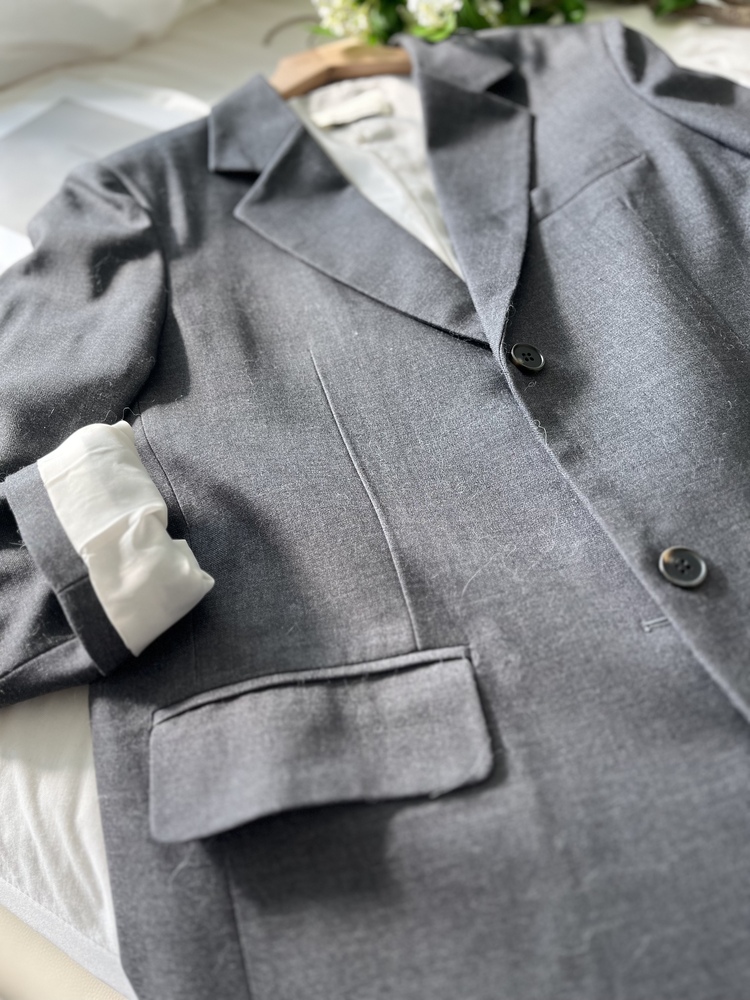 修直的袖型內藏超薄shoulder pad
