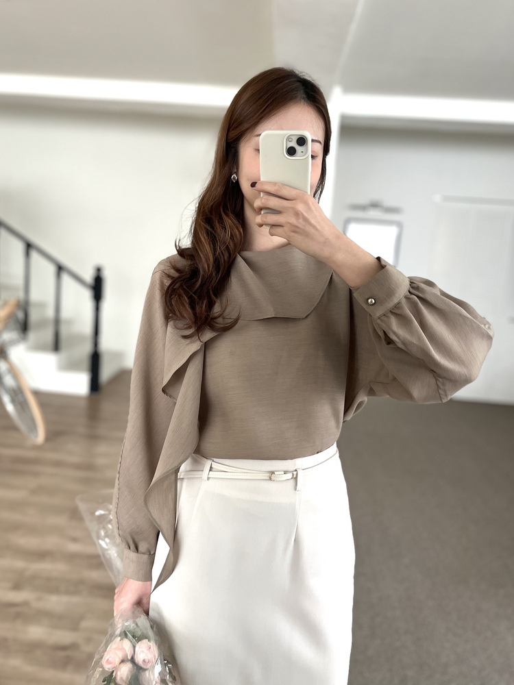 帶垂墜感的scarf design為整件blouse的亮點!