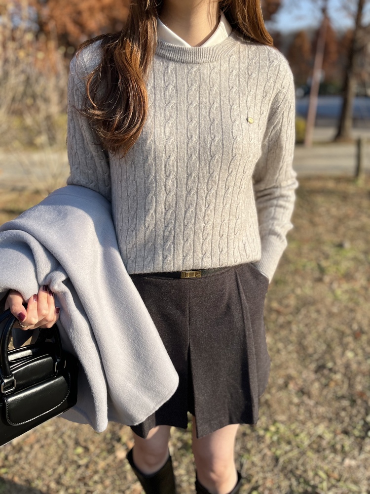 Raccoon Cable Knit Sweater (Oatish Grey)