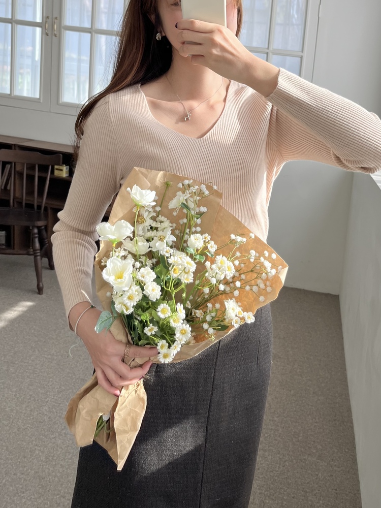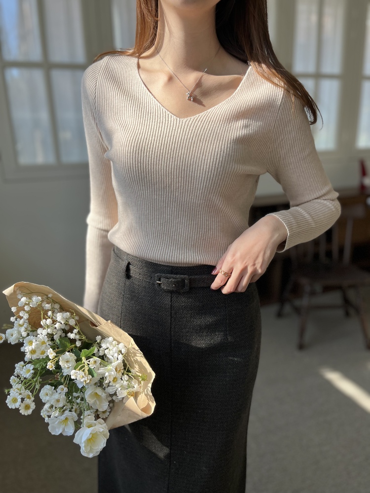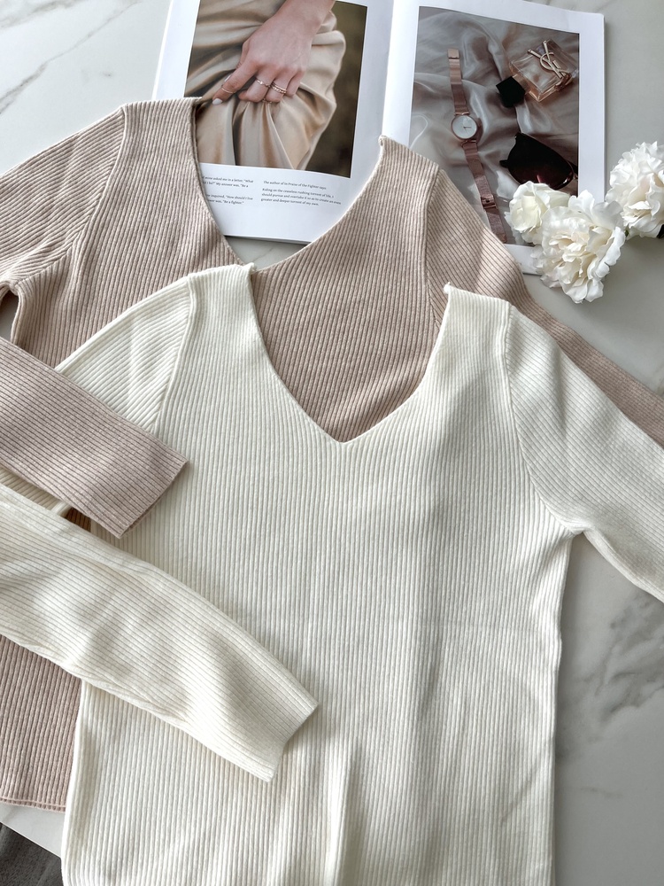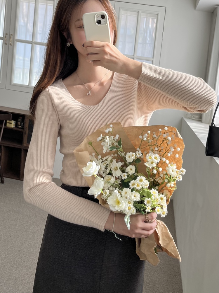 U Neck Soft Ribbed Top (Cream Beige)